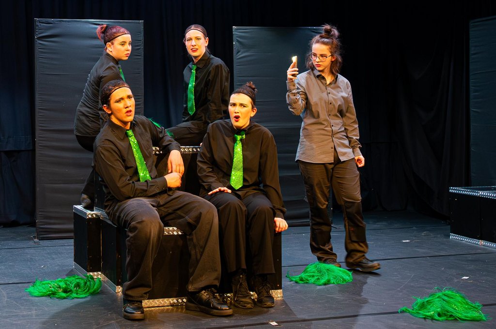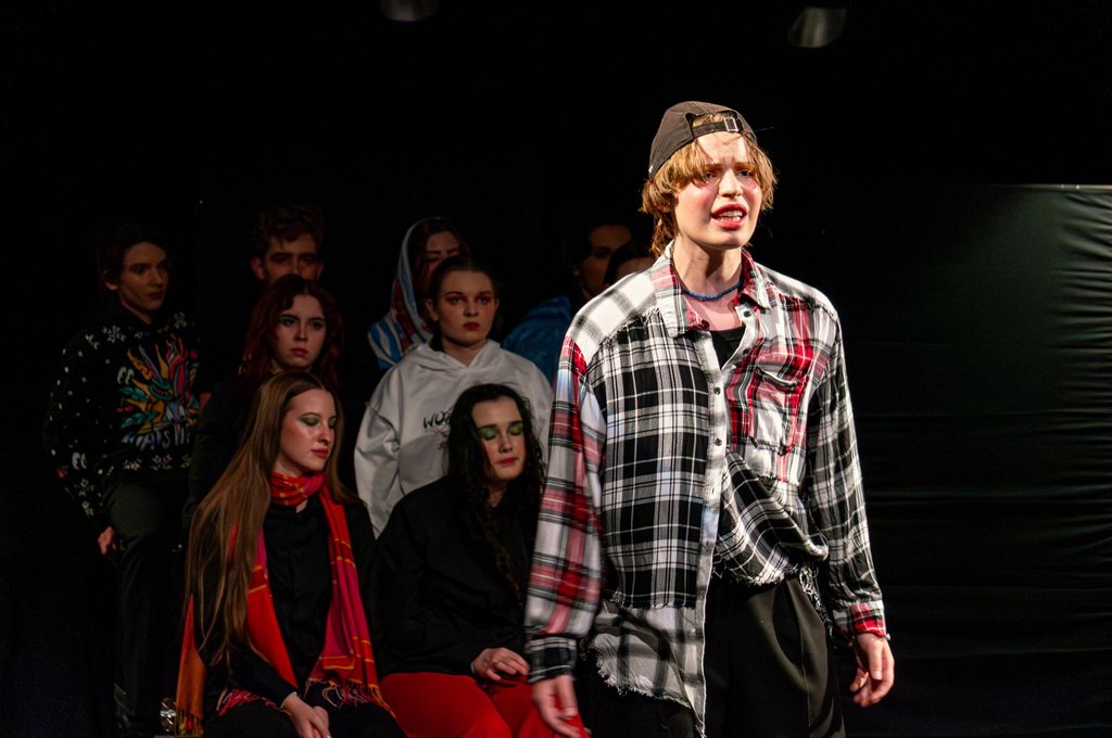 Das Ensemble überzeugte durch eine starke gemeinsame Leistung. Die Jugendlichen bewältigten beeindruckende Textmengen, die präzise auf mehrere Stimmen verteilt und mit hohem Tempo vorgetragen wurden, so dass das Publikum gebannt zuhörte und sich auf die emotionale Achterbahn einliess. Der Inhalt könnte aus der Feder der Jugendlichen auf der Bühne stammen – so authentisch wirken die Referenzen auf Social Media, Filmhelden und alltägliche Unsicherheiten.
