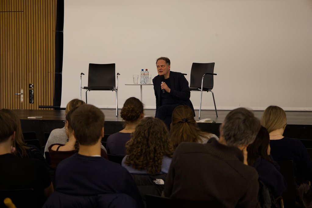 «Wenn die anderen in den Schulferien nach Adelboden oder Arosa gingen, dann hiess es bei mir: Wir gehen in die DDR», erzählte Thomas Strässle an der Lesung vom 24. November 2025 in der Aula der KUS. Die Aussage bezieht sich auf die Zeit, in der Deutschland noch in BRD und DDR geteilt war, und veranschaulicht Strässles prägende Besuche in der DDR als Kind. In der ‹Fluchtnovelle›, die 2024 erschienen ist, rekonstruiert er die Fluchtgeschichte seiner Eltern, die sich blutjung während einer Studienreise 1965 kennen- und liebengelernt hatten. Sie war eine Studentin aus der DDR, er ein Student aus der Schweiz. Mit dem Wunsch nach einem gemeinsamen Leben im Westen und der bedrückenden Einsicht, dass dies auf legalem Weg nicht möglich wäre, schmiedeten sie gemeinsam einen Plan.
