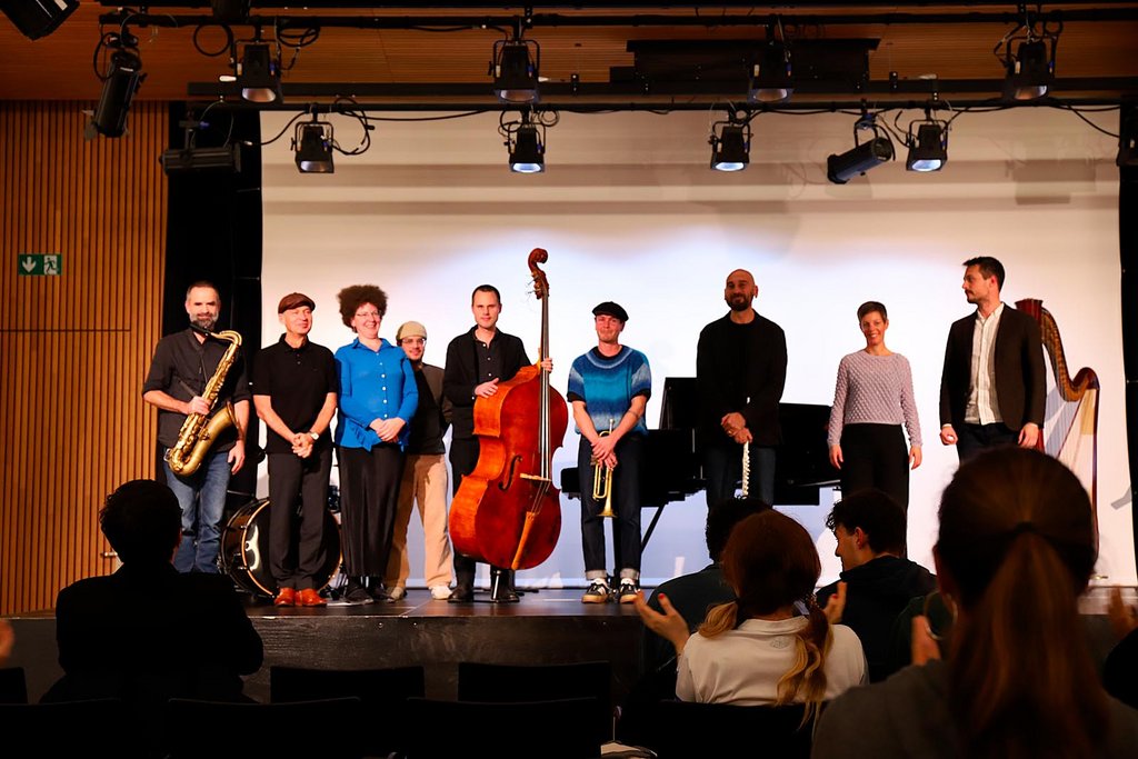 In Duetten, kleinen Jazzformationen oder auch als Solo-Auftritt trugen einige Instrumentallehrpersonen Stücke vor. Eröffnet wurde das Konzert mit einem lebhaften Stück, welches auf der Geige vorgetragen wurde. Ein mitreissender Einstieg, welcher das Publikum in den klangreichen Abend einführte. Mit jedem neuen vorgetragenen Stück wurde das Publikum mehr und mehr in den Bann der Musik gezogen. Ein Highlight des Abends bildete Bernhard Götterts Vorstellung auf dem Cello, in welcher er das gesamte Spektrum an Klängen des Instrumentes eindrucksvoll präsentierte. Den krönenden Abschluss bildete ein Jazz-Ensemble bestehend aus Saxofon, Trompete, Querflöte, Kontrabass und Schlagzeug. Auf den Jazz-Klassiker ‚Blue Bossa‘ folgte eine kurze Jam-Session, in welcher vor allem die Solis des Saxofons und der Trompete einen bleibenden Eindruck beim Publikum hinterliessen.