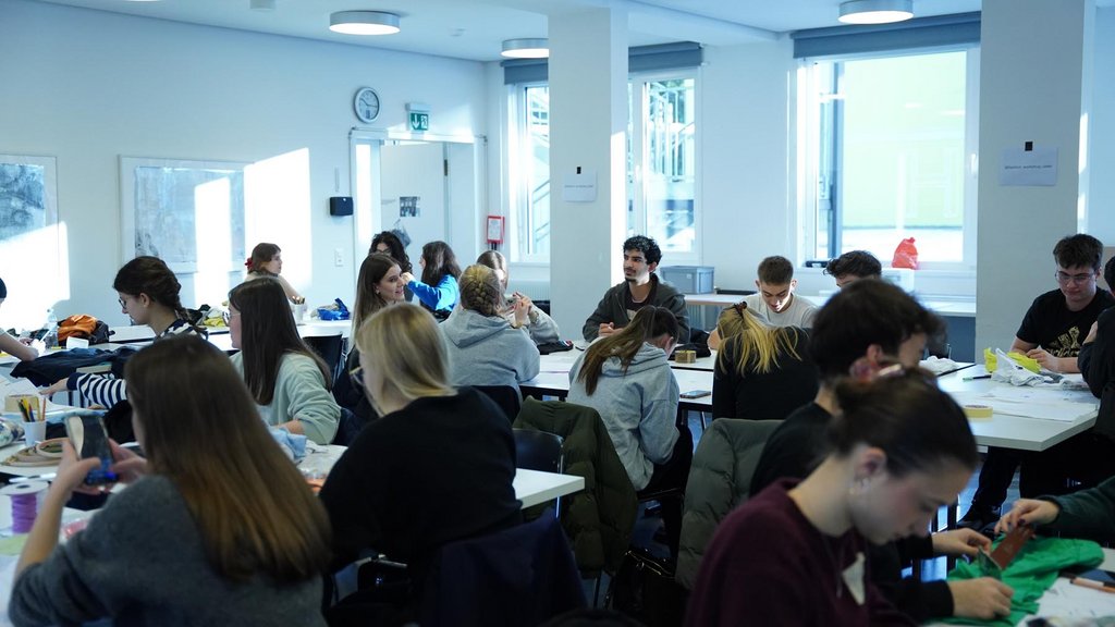 Unter der Anleitung von sechs Designer:innen verwandelten sich das Alpha und Beta am Donnerstag, den 15.1., und Freitag, den 16.1., in ein kreatives Atelier. Beim Fashion-Workshop durften sich die Sechstklässler:innen frei entfalten: Es wurde geschnitten, gerissen, gemalt, gesprayt, genäht und gestickt, inszeniert und fotografiert. Alles mit dem Ziel, die erfindungsreichen Ideen der Schüler:innen in Kunstwerke zu verwandeln.