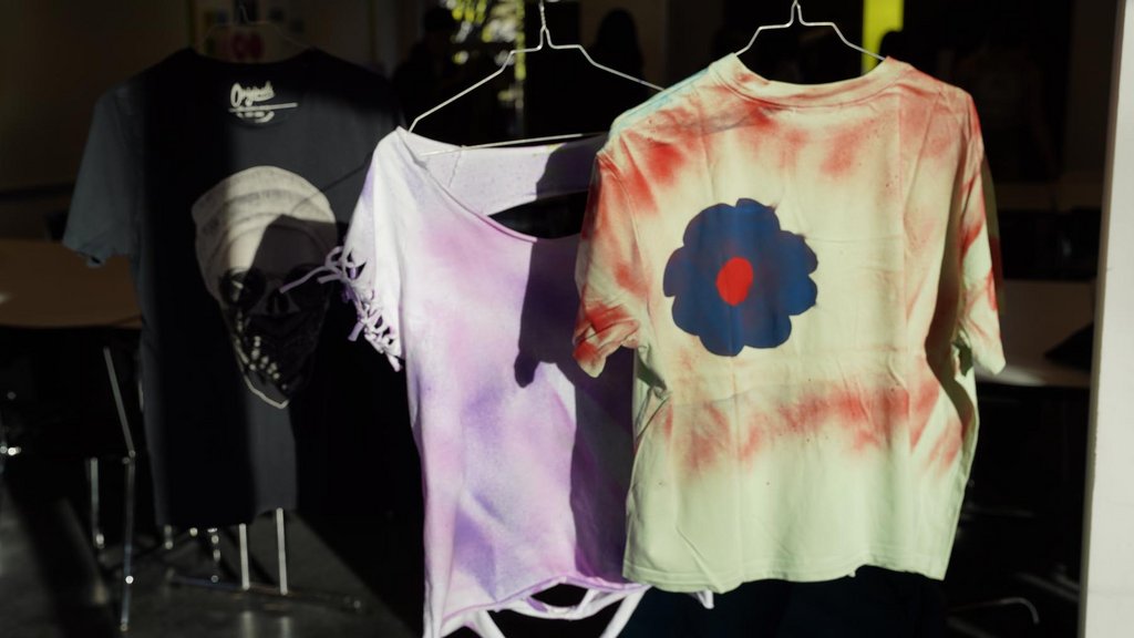 Für die Umsetzung wurde den Schüler:innen unterschiedliches Material zur Verfügung gestellt: Farbstifte, Malfarbe, Sprays, bunte Fäden, Sicherheitsnadeln, Perlen und vieles weitere. Diese grosse Auswahl machten sich die Sechstklässler:innen zunutze und arbeiteten mit grosser Konzentration und Begeisterung an ihren kreativen Shirts. Unterstützt von den Designer:innen wuchsen aus skizzierten Ideen einzigartige Kleidungsstücke, die die Schüler:innen nach ihrem Geschmack inszenieren konnten. Die Bandbreite der gezauberten Designs reichte von schlichten Stickereien über gesprayte Motive bis hin zu politischen Statement-Pieces.